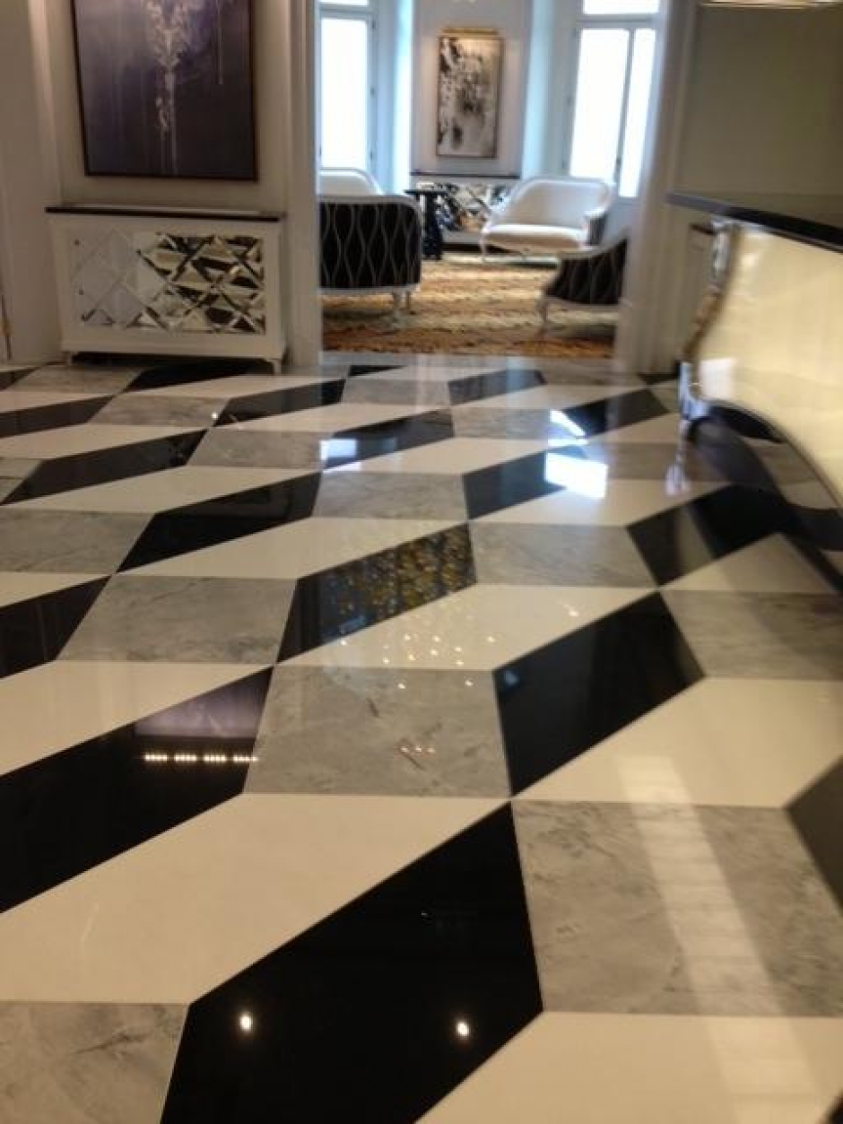 Solado de Blanco Thassos, Negro Marquina y Portobello 3